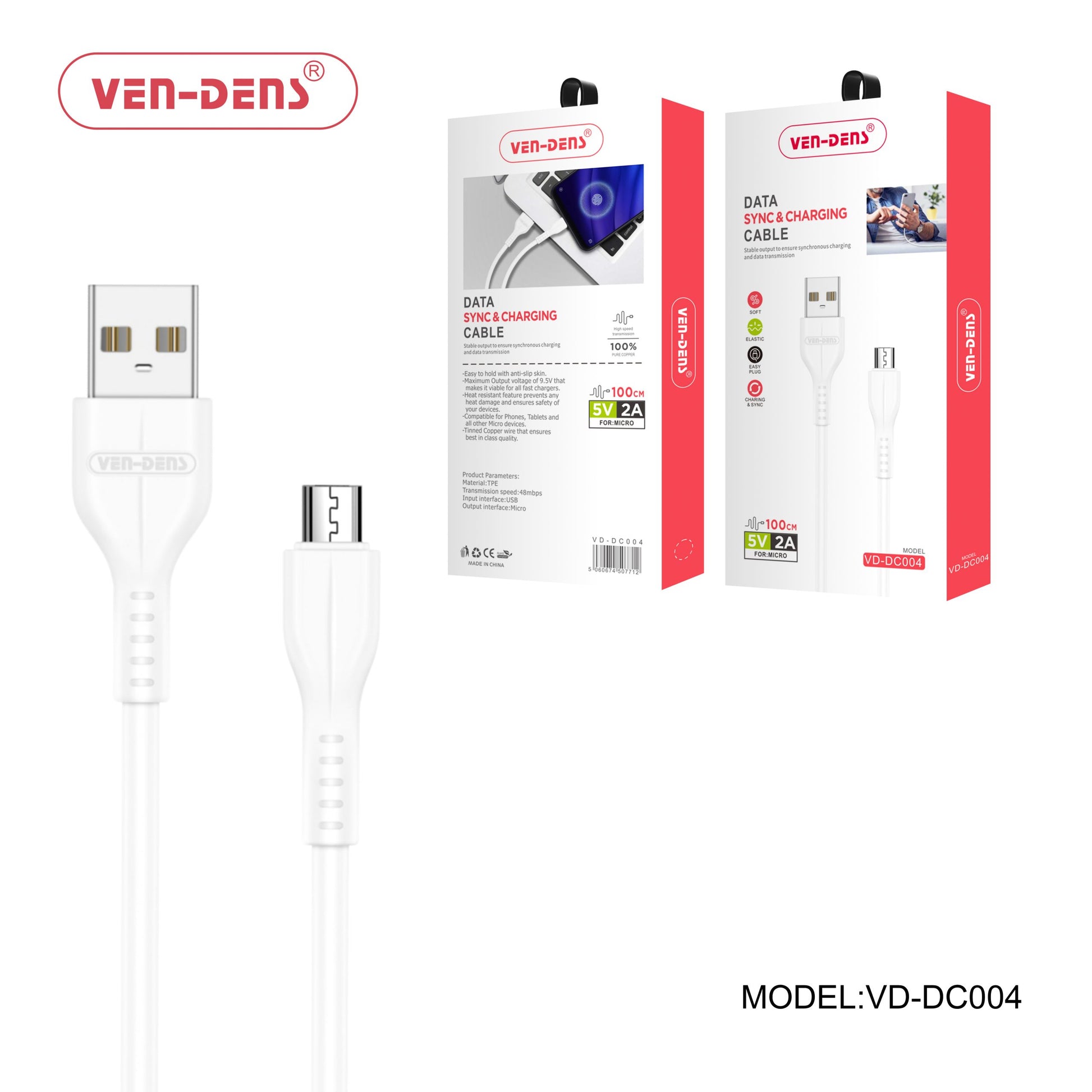Lightbox USB to Micro Charging Cable 2A White (1 Meter)